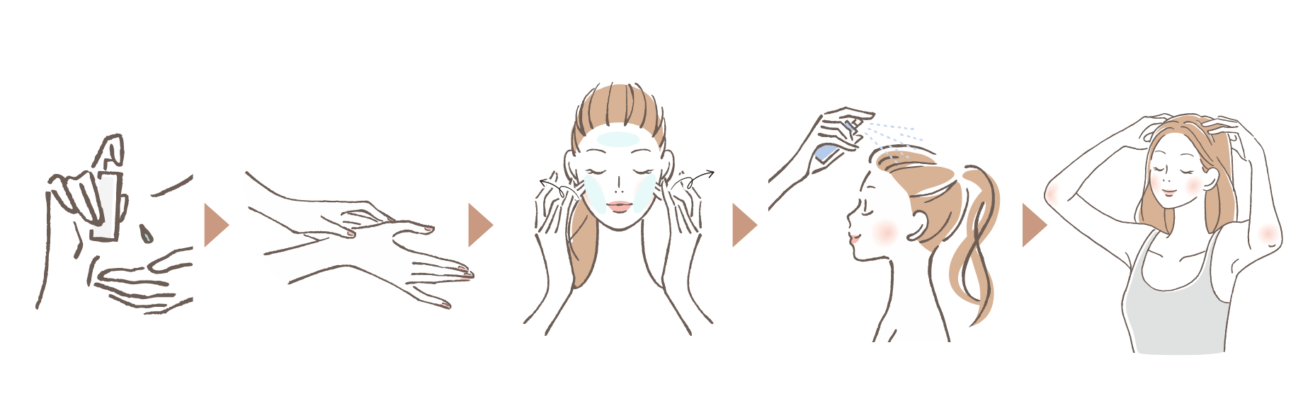 1.ボディローションを手のひらにスプレーします。