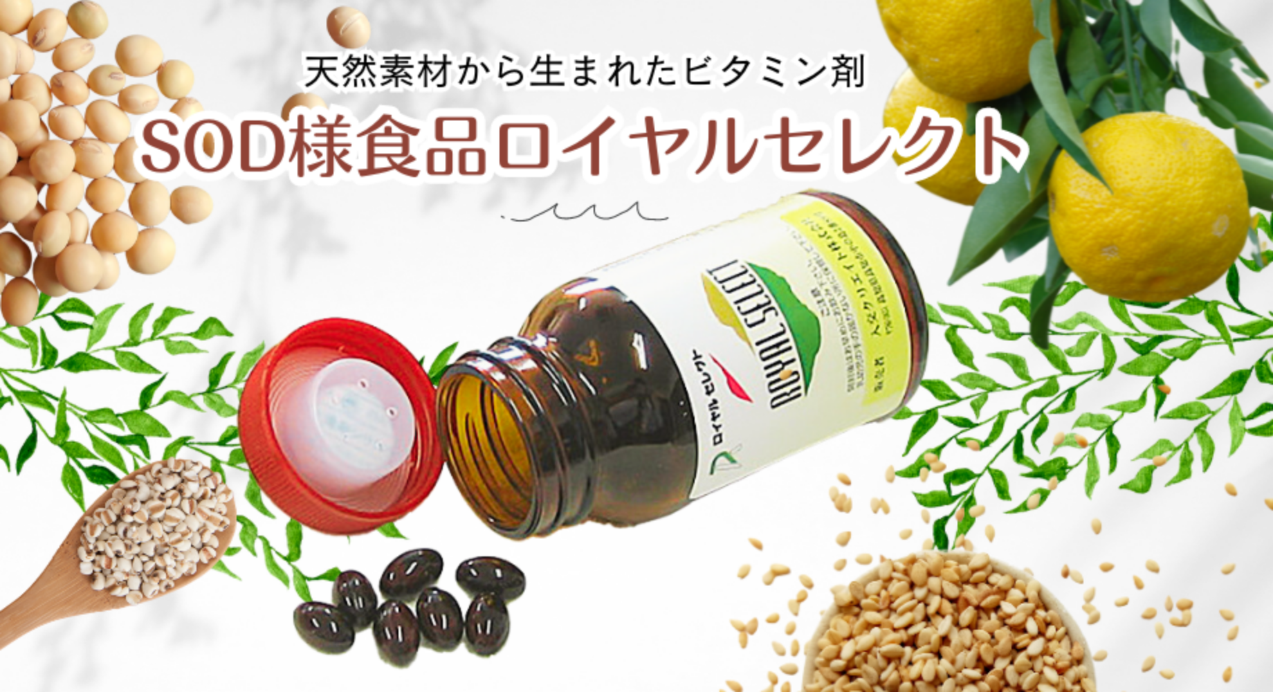 SOD作用食品ロイヤルセレクトは、 ベータカロチン、ビタミンE・C、フラボノイド、ポリフェノール類を含んだ天然素材の植物や穀物を材料としています。