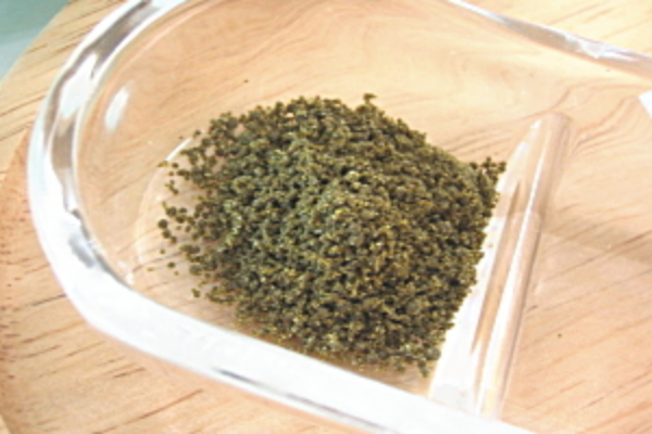 上述の加工した原料を細かく粉砕した後、遠赤外線で焙煎したゴマから抽出した(絞り出した)ゴマ油で 油剤化(油に浸す)する。